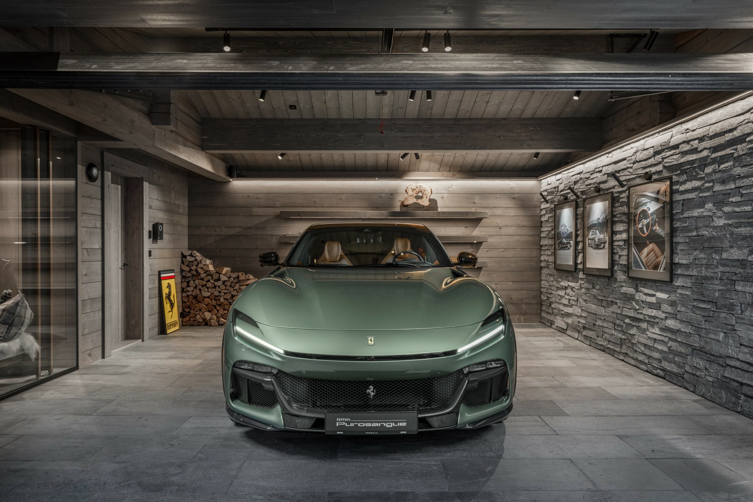 - Garage interior finished to such a high standard that a full-size glass wall connects the hall visually to the garage.