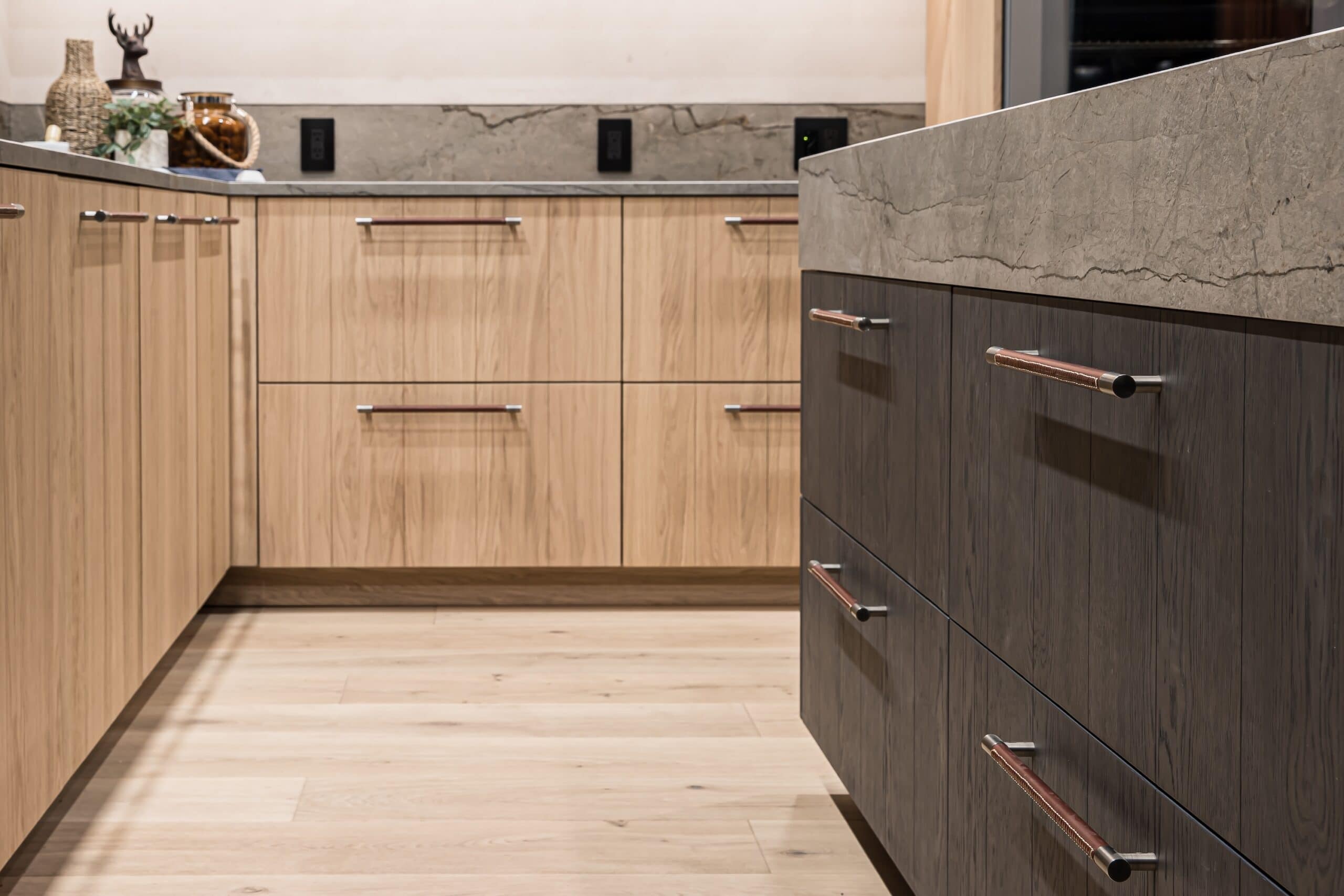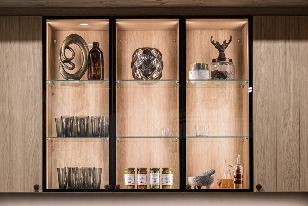 The bespoke 10-metre-long kitchen is crafted from A+ grade German brushed oak veneer, with all drawers made from solid oak using traditional finger-joint joinery — ensuring durability, precision, and chemical-free authenticity. Integrated drawer lighting and premium BLUM fittings provide seamless functionality and long-term reliability.