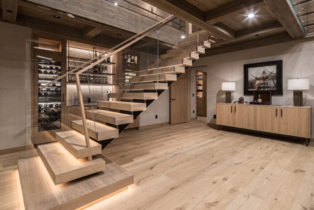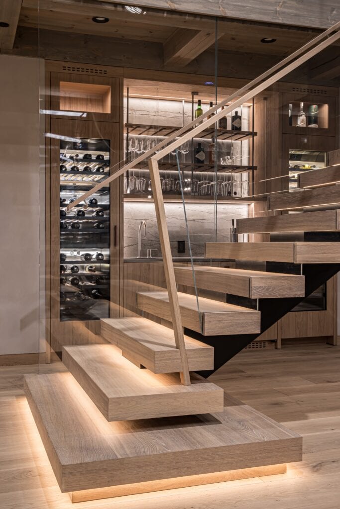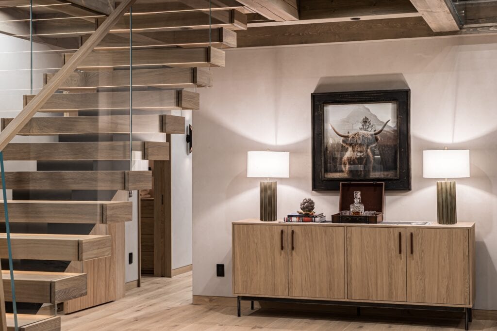 The home features a striking semi-floating staircase by LHM Step, the LHM Group’s bespoke staircase manufacturer exporting worldwide, including the U.S. The design combines architectural clarity with craftsmanship — natural oak steps, crystal-clear tempered glass balustrades, and clean, minimal lines that create the illusion of steps suspended in mid-air.